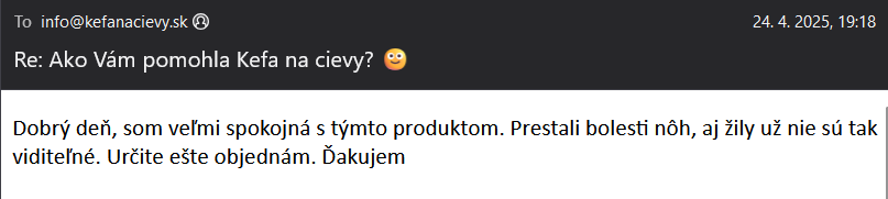 Investujte do zdravia svojich nôh a žíl pomocou prírodného prípravku Kefa na cievy. Tento spoľahlivý produkt je ideálnym spojencom v boji proti kŕčovým žilám a to bez vedľajších účinkov. Urobte prvý krok k ľahkým a zdravým nohám už dnes!